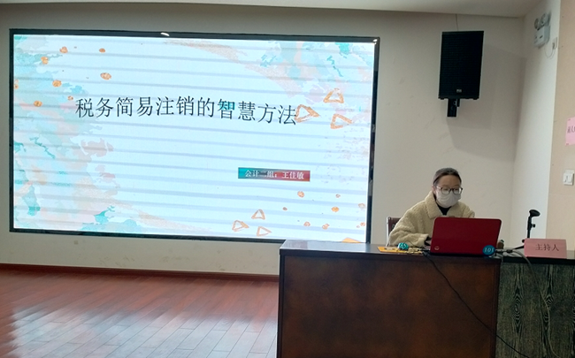 王佳敏會(huì)計(jì)從事具體業(yè)務(wù)時(shí)間不長,但她學(xué)習(xí)努力、備課認(rèn)真,她結(jié)合日常服務(wù)累積的經(jīng)驗(yàn)和所學(xué)的財(cái)稅知識(shí),向大家詳細(xì)講解了企業(yè)稅務(wù)簡易注銷需符合的條件、并以具體案例演示了辦理簡易注銷的操作流程。經(jīng)過王佳敏的講解,參與分享的人員對(duì)“簡易注銷”有了更深入、全面的認(rèn)識(shí),有助于更好的為企業(yè)做好服務(wù)。最后,中心副主任汪銘進(jìn)行了點(diǎn)評(píng),他鼓勵(lì)年輕員工放開膽子去嘗試、不斷總結(jié)求提高,借助PPT的形式與他人分享收獲,探討問題,促進(jìn)團(tuán)隊(duì)和個(gè)人更好成長和更快提升!